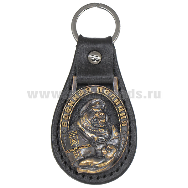 Брелок мет. (литье) на подкладке из нат. кожи Военная полиция (медведь)