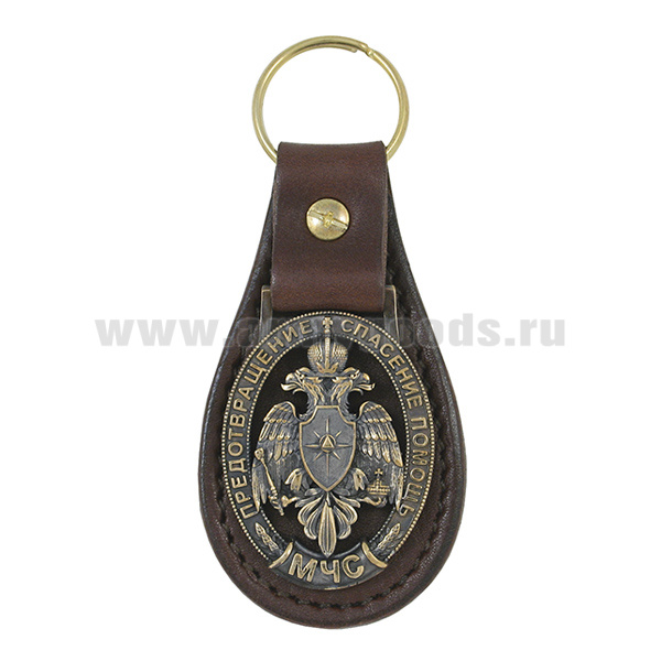 Брелок мет. (литье) на подкладке из нат. кожи МЧС (Предотвращение спасение помощь)