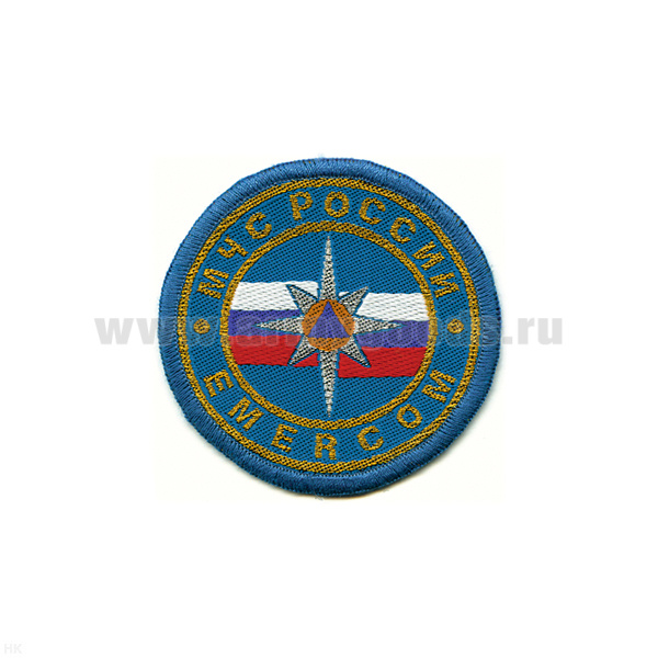 Шеврон тканый МЧС России EMERCOM (кругл.) бол. голуб.