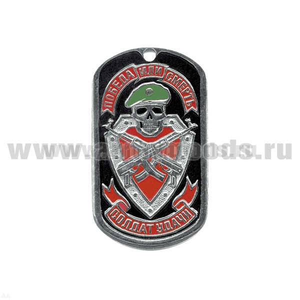 Жетон (нерж. ст., эмал.) Солдат удачи Победа или смерть (череп в зел. берете)
