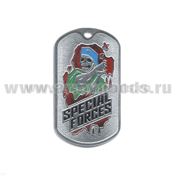 Жетон (нерж. ст., эмал.) Specilal forces (скелет в голуб. берете с кинжалом)