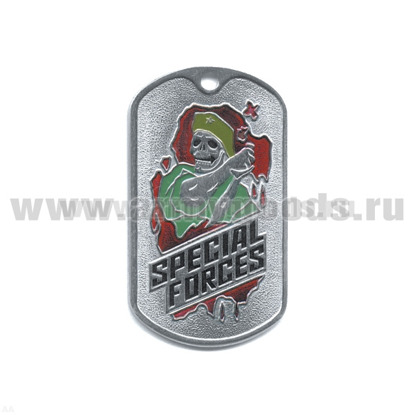 Жетон (нерж. ст., эмал.) Specilal forces (скелет в оливк. берете с кинжалом)