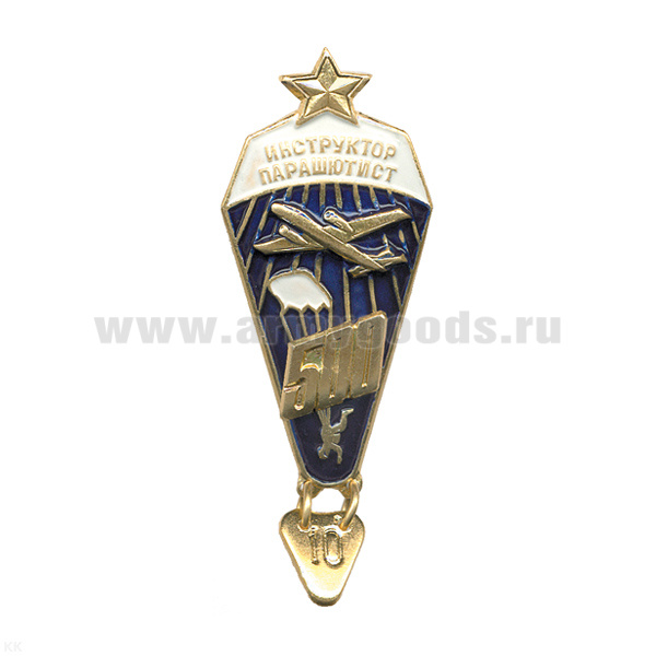 Главная-20 ЗНАЧКИ МЕТАЛЛИЧЕСКИЕ-2003 ЗНАЧКИ ВДВ-Значок мет. Инстр.-парашютист 500 прыжков (с желт. звездой) хол. эм.