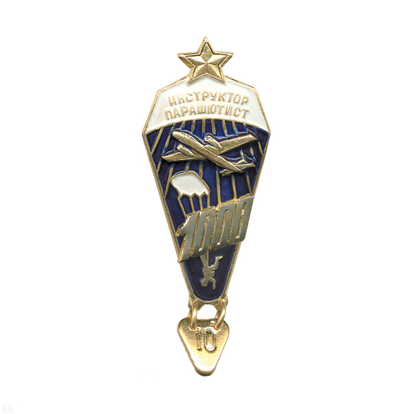 Значок мет. Инстр.-парашютист 1000 прыжков (с желт. звездой) хол. эм.