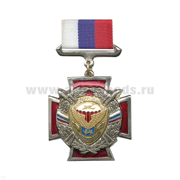 Медаль 76 гв. ВДД (серия ВДВ (красн. крест с венком) (на планке - лента РФ)