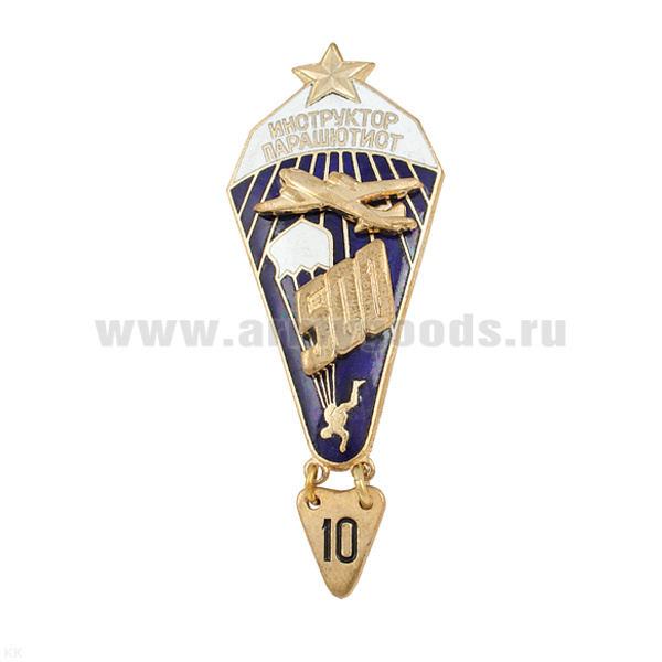 Значок мет. Инстр.-парашютист 500 прыжков (с желт. звездой) хол. эм.