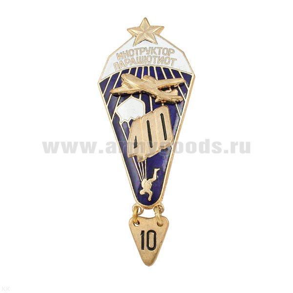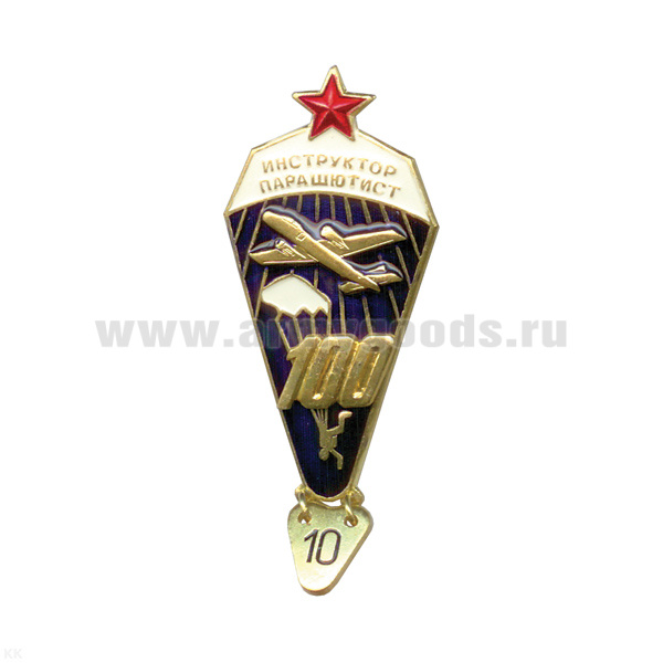 Значок мет. Инстр.-парашютист 100 прыжков (с красн. звездой) хол. эм.
