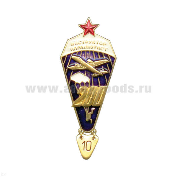 Значок мет. Инстр.-парашютист 200 прыжков (с красн. звездой) хол. эм.