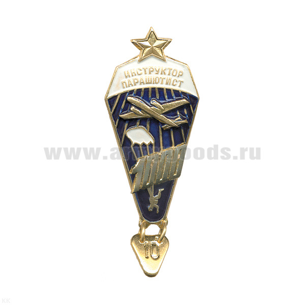 Значок мет. Инстр.-парашютист 1000 прыжков (с желт. звездой) хол. эм.