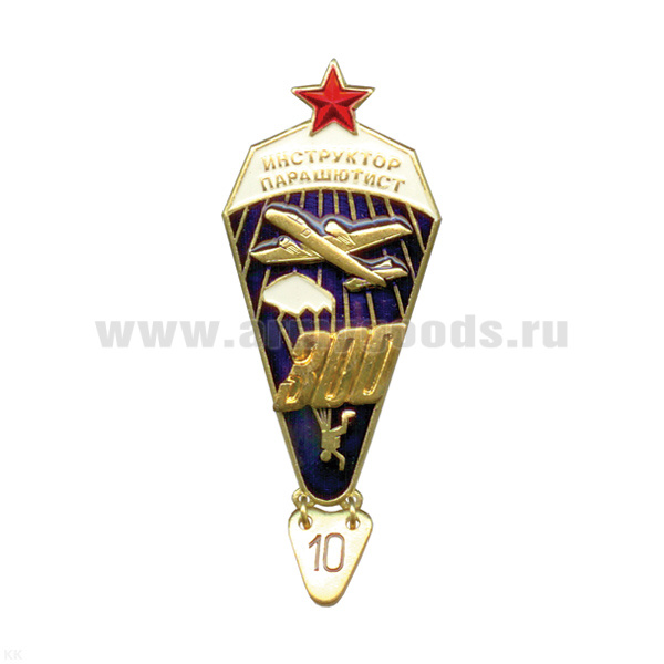 Значок мет. Инстр.-парашютист 300 прыжков (с красн. звездой) хол. эм.