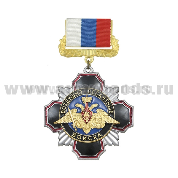 Медаль Стальной черн. крест с красн. кантом ВДВ (орел) (на планке - лента РФ)
