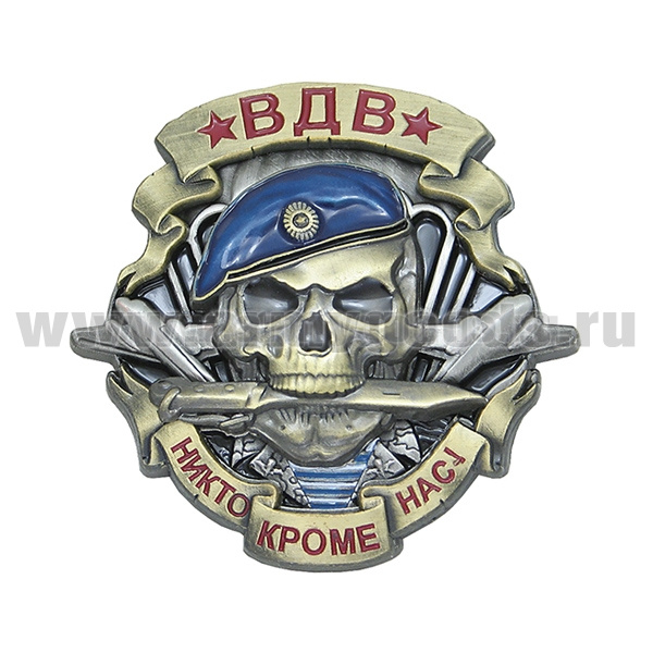 Значок мет. ВДВ Никто, кроме нас! (череп с ножом на фоне эмблемы ВДВ)