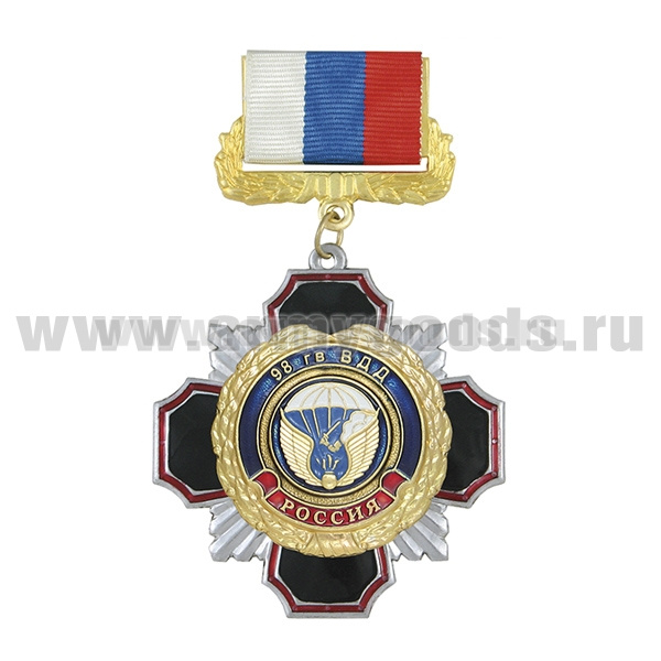 Медаль Стальной черн. крест с красн. кантом 98 гв. ВДД (на планке - лента РФ)