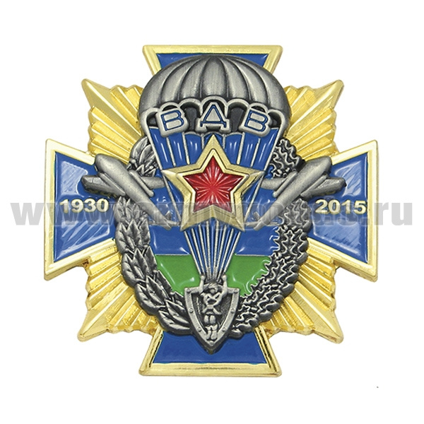 Значок мет. ВДВ 1930-2015 (эмблема ВДВ со звездой на кресте с лучами, 2 накладки)