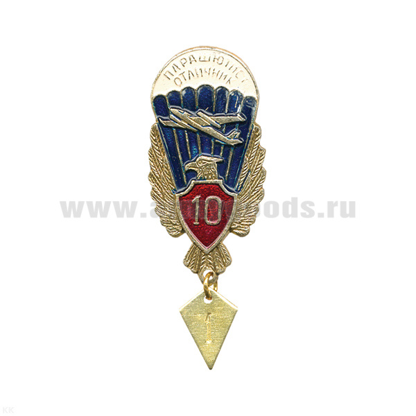 Значок мет. Парашютист-отличник 10 прыжков (с орлом, красн. щитком, без звезды)