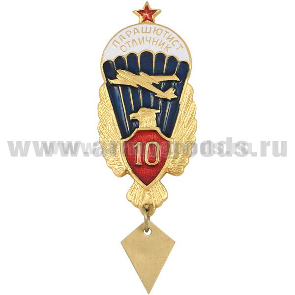 Значок мет. Парашютист-отличник 10 прыжков (с орлом, красн. щитком, со звездой)