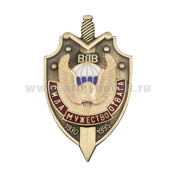 Значок мет. ВДВ Сила, мужество, отвага 1930-1995 (щит и меч) гор. эм.