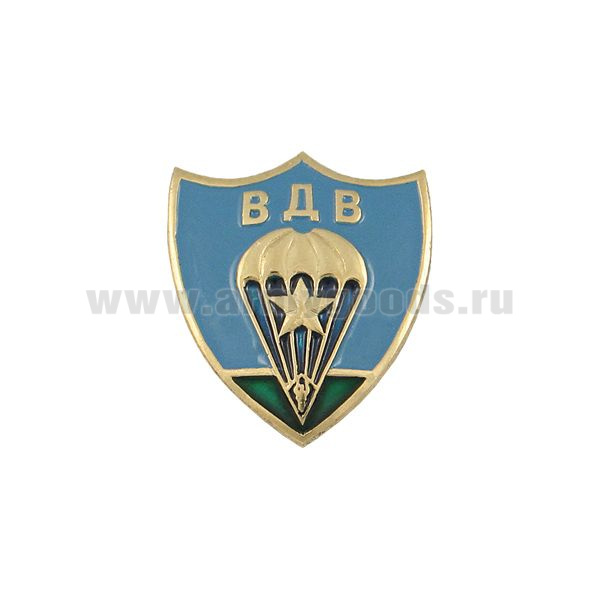 Значок мет. ВДВ (парашютист со звездой на 4-хуг. щите) мал., на пимсе