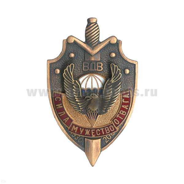 Значок мет. ВДВ Сила, мужество, отвага 1930-2000 (щит и меч) гор. эм.