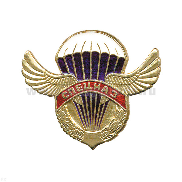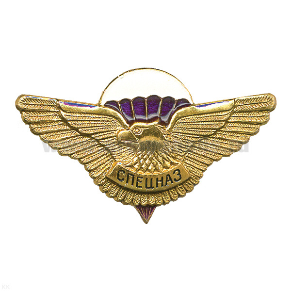 Значок мет. Спецназ (серия орел с парашютом, крылья в стороны с названиями дивизий ВДВ)
