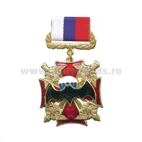 Медаль Летуч. мышь ВДВ (син. крест с 4 орлами по углам) (на планке - лента РФ)