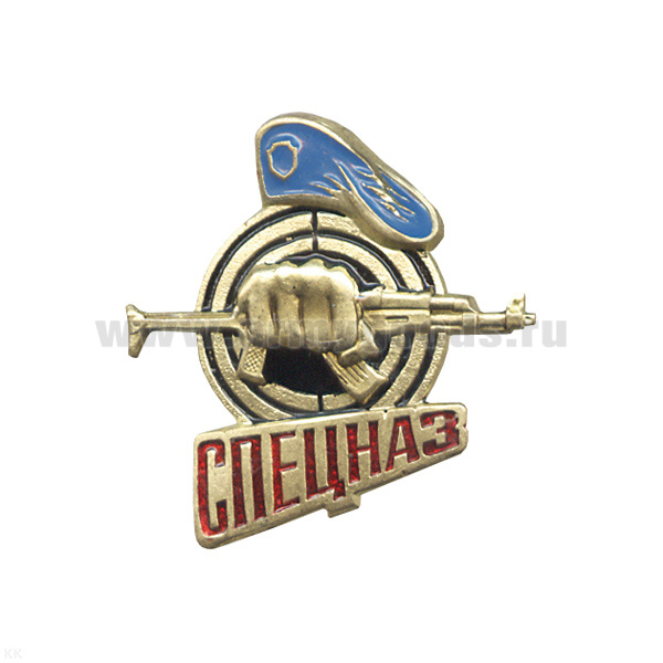 Значок мет. Спецназ (кулак с автоматом без венка) голуб. берет