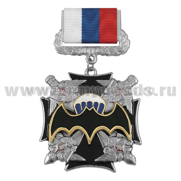 Медаль Летуч. мышь ВДВ (черн. крест с 4 орлами по углам) (на планке - лента РФ)