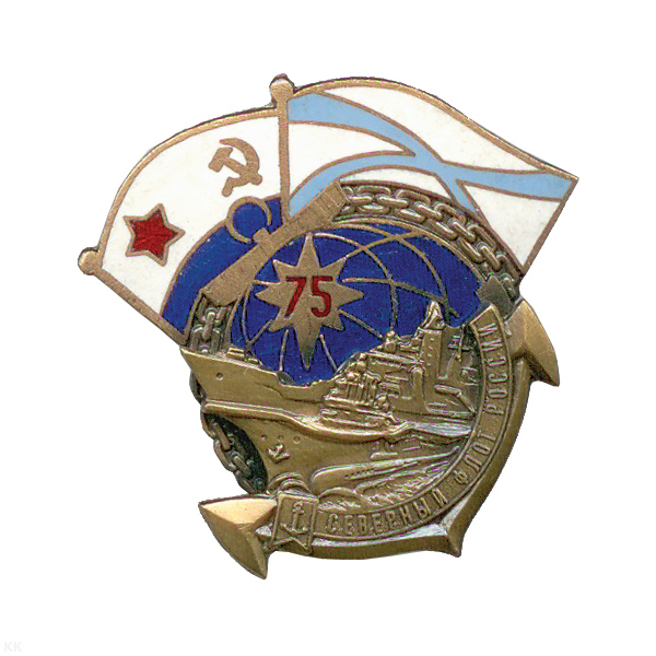 Значок мет. Северный флот России 75 лет (с кораблем, памятный) гор. эм.