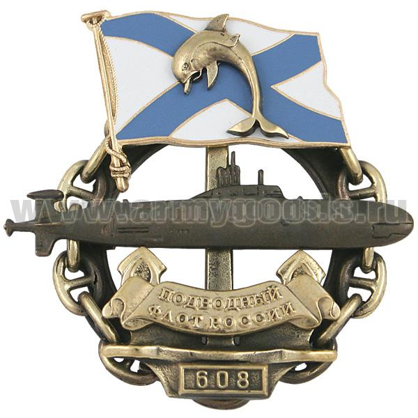 Значок мет. 20 лет экипажу 608 (ПЛ с дельфином на андр. флаге)
