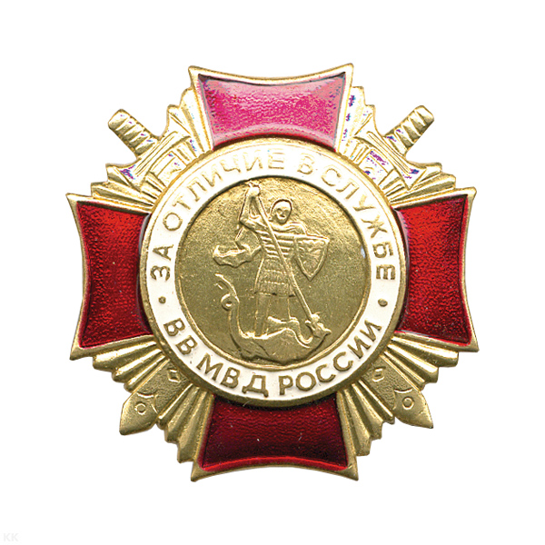 Значок мет. Крест За отличие в службе ВВ МВД России (прост.) зол. 1 степ.