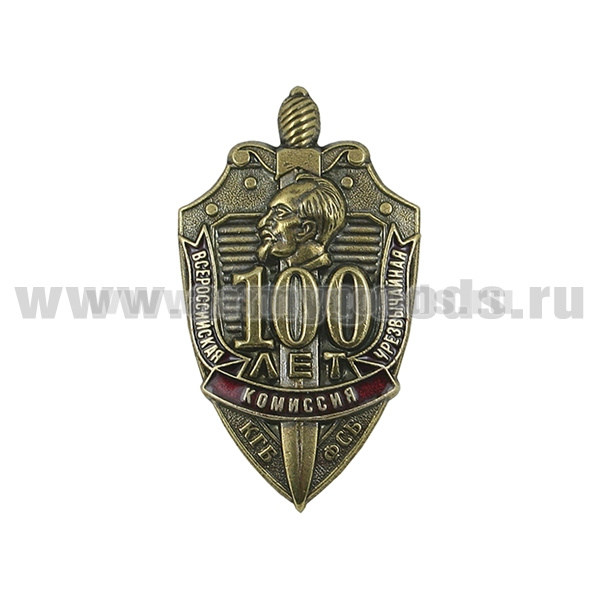 Значок мет. 100 лет Всероссийской чрезвычайной комиссии КГБ-ФСБ (щит и меч, с Дзержинским)