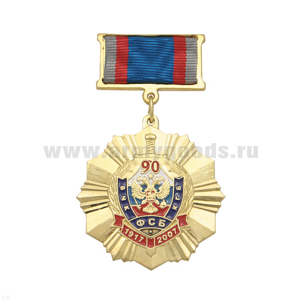 Главная-20 ЗНАЧКИ МЕТАЛЛИЧЕСКИЕ-2009 ЗНАЧКИ ФСБ и прочие спецслужбы-Медаль 90 лет ВЧК-КГБ-ФСБ 1917-2007 (на планке - лента)