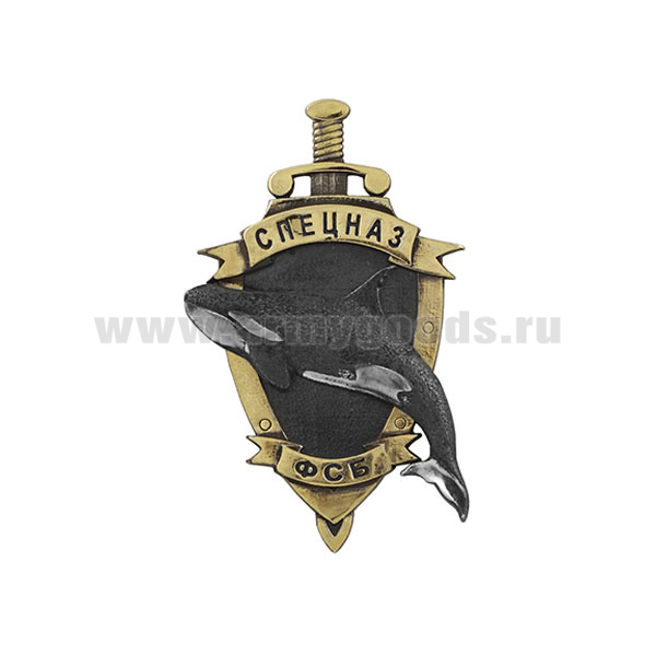 Значок мет. Спецназ ФСБ (касатка) (щит и меч, с накладкой)