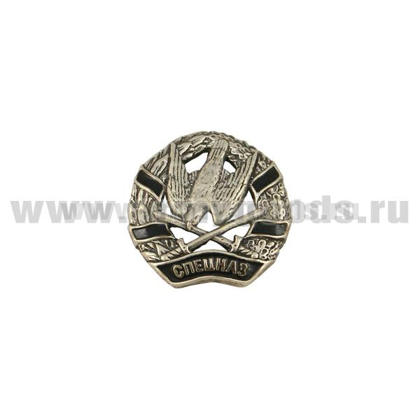 Значок мет. Спецназ (пикирующая птица над перекрещенными мечами, в венке с черной лентой) мал., на пимсе