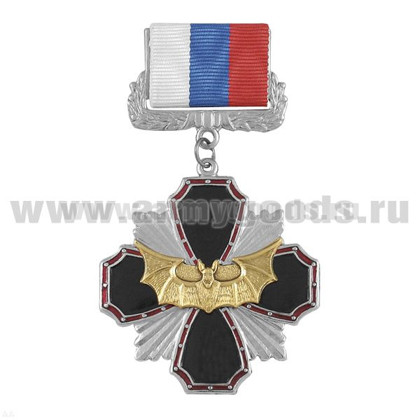 Медаль Стальной черн. крест с красн. кантом с летучей мышью (на планке - лента РФ)