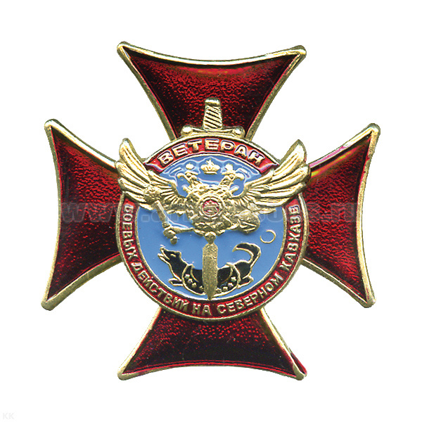 Значок мет. Ветеран боевых действий на Cеверном Кавказе (крест с волком) с орлом МВД