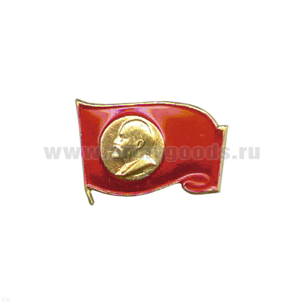 Значок мет. Флажок красн. с профилем Ленина в круге