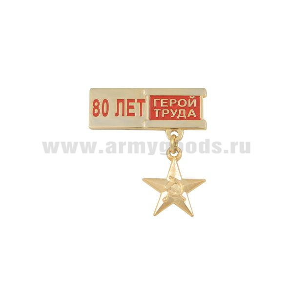 Главная-20 ЗНАЧКИ МЕТАЛЛИЧЕСКИЕ-2017 ЗНАЧКИ Советская эпоха-Медаль 80 лет Герой труда (миниатюрная звезда на планке)