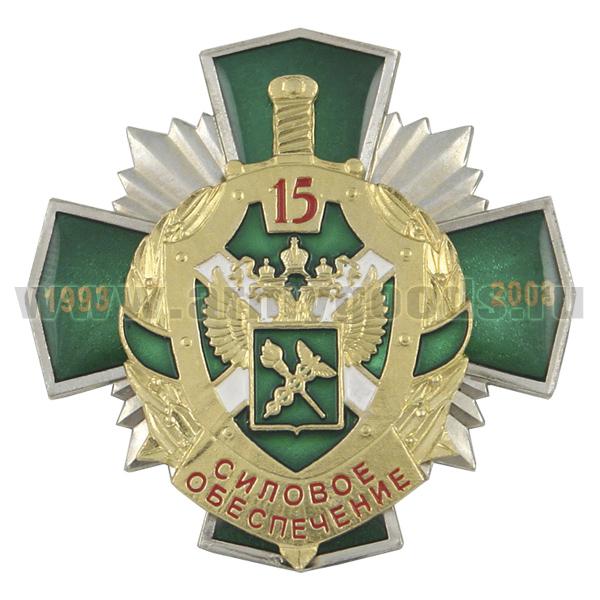 Значок мет. 15 лет силовому обеспечению 1993-2008 (ФТС России) зел. крест с накл., заливка смолой