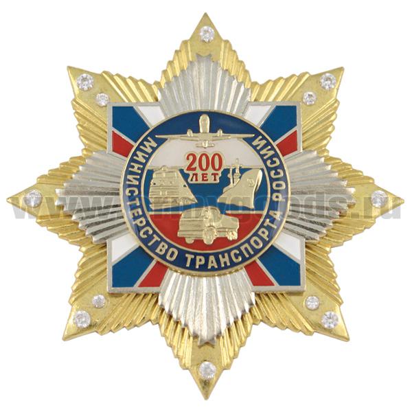 Значок мет. 200 лет министерству транспорта России (звезда с накл. на звезде с фианитами)