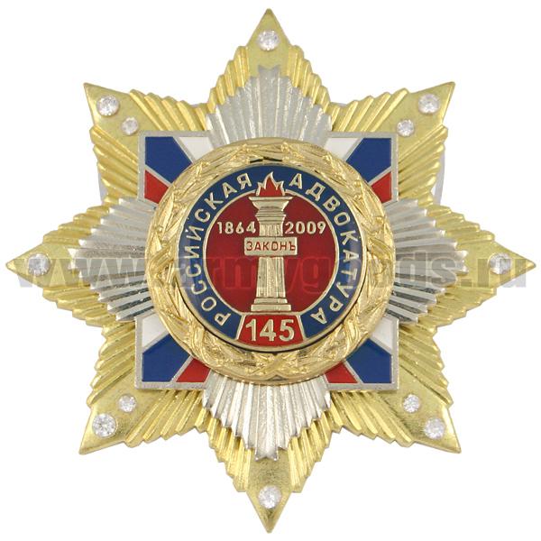 Значок мет. 145 лет российской адвокатуре (звезда с накл. на звезде с фианитами)