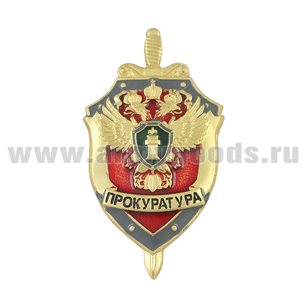Значок мет. Прокуратура (щит и меч) красн.