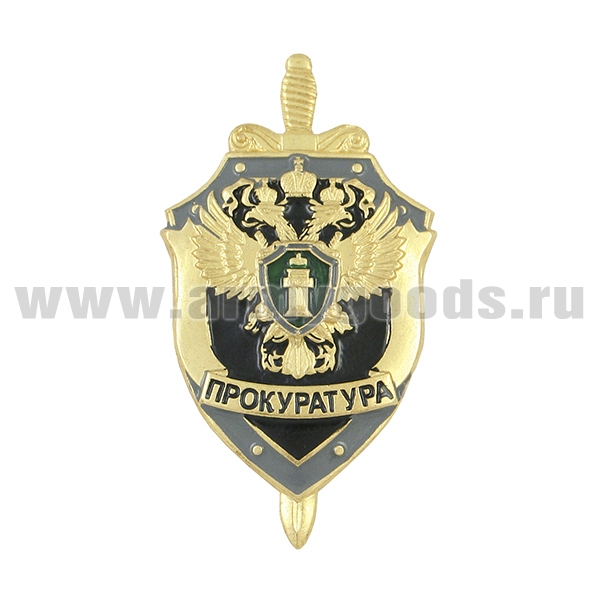 Главная-20 ЗНАЧКИ МЕТАЛЛИЧЕСКИЕ-2020 ЗНАЧКИ Организации, службы, ведомства-Значок мет. Прокуратура (щит и меч) черн.