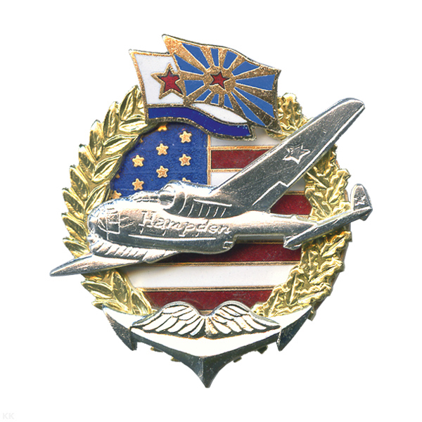 Главная-20 ЗНАЧКИ МЕТАЛЛИЧЕСКИЕ-Значок мет. Hampden (с флагами) (серия Самолеты по американскому ленд-лизу) гор. эм.
