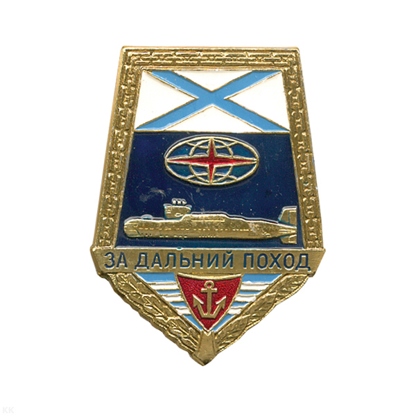 Значок мет. За дальний поход ("лопата" с андр. флагом) ПЛ, алюм.