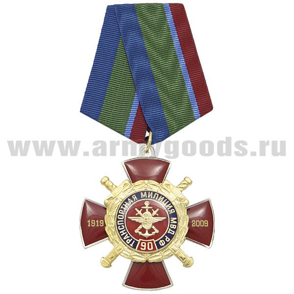 Медаль 90 лет транспортной милиции МВД РФ 1919-2009 (красн. крест с накл., заливка смолой) с эмбл. ВОСО (с удост.)