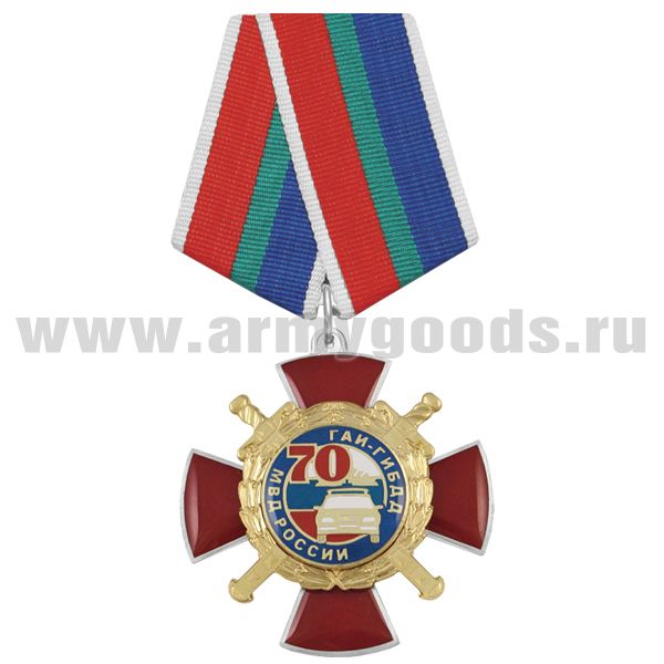 Медаль 70 лет ГАИ-ГИБДД МВД России (красный крест с машиной, с накладками, смола)