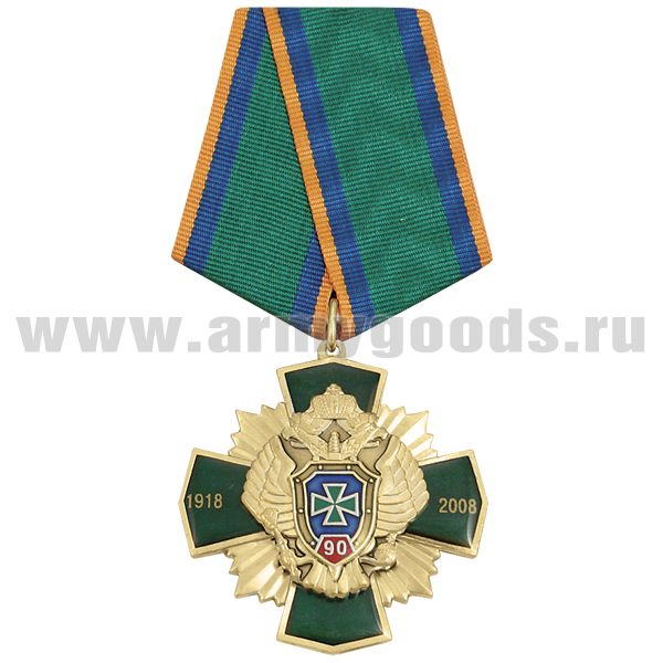 Медаль 90 лет ПС 1918-2008 (зел. крест с накл., заливка смолой)