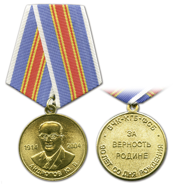 Медаль Андропов Ю.В. За верность родине ВЧК-КГБ-ФСБ (1914-2004 90 лет со дня рождения)
