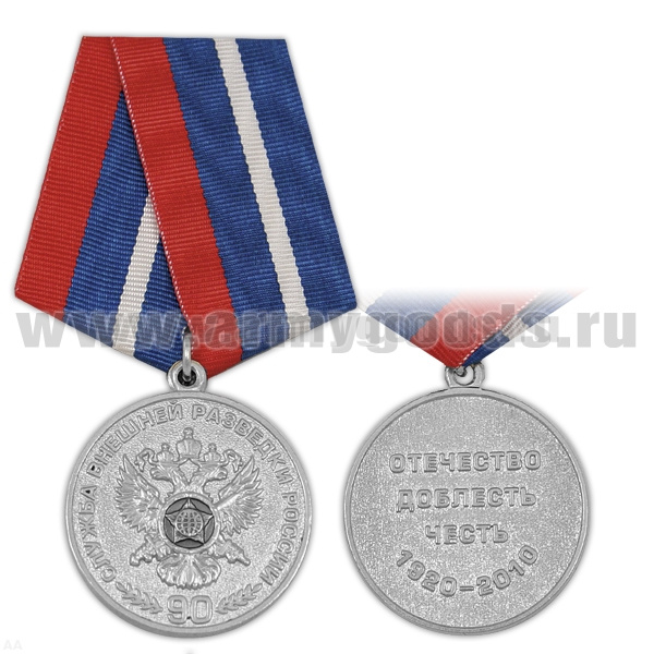 Медаль 90 лет службе внешней разведки России (Отечество, доблесть, честь)